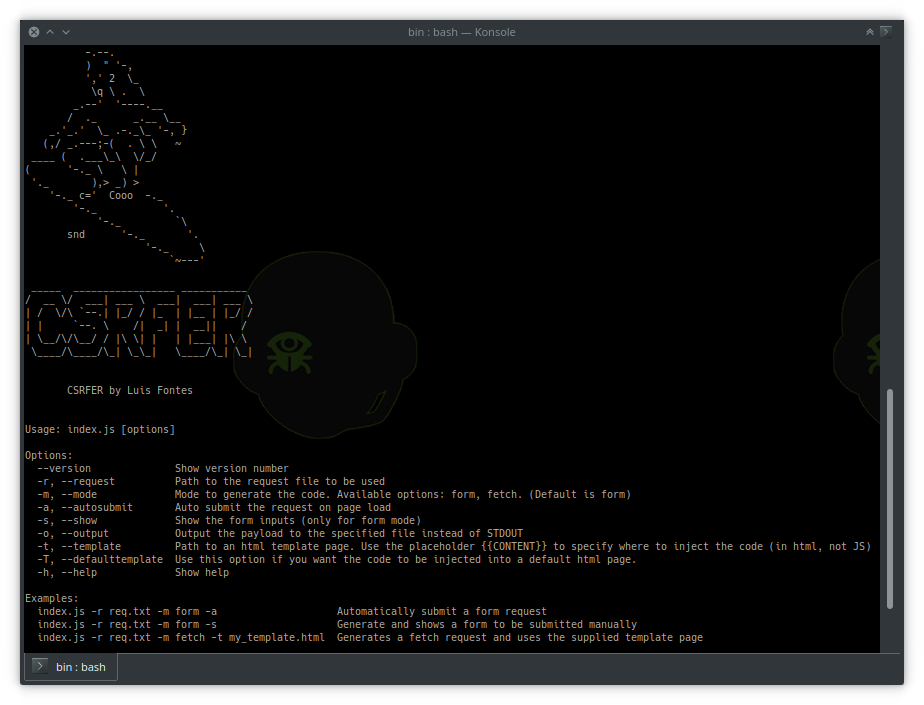 csrfer -r req.txt -m fetch -t my_template.html Generates a fetch request and uses the supplied template