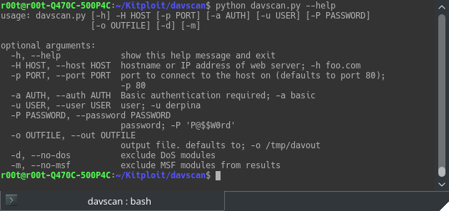 DAVScan é um scanner de webdav rápido e leve projetado para descobrir arquivos e pastas ocultos em servidores web habilitados para DAV. O scanner funciona aproveitando servidores ou servidores WebDAV excessivamente privilegiados / mal configurados vulneráveis a várias vulnerabilidades de ignorância de divulgação ou autenticação. O scanner tenta digitalizar o servidor de destino e, em seguida, aranha