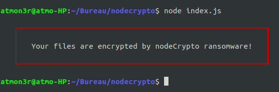 NodeCrypt é um Ransomware Linux escrito em NodeJs que criptografa arquivos predefinidos. Este projeto foi criado para fins educacionais, você é o único responsável pelo uso do nodeCrypto.