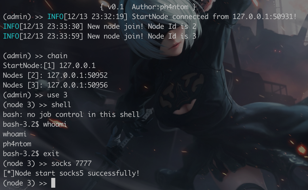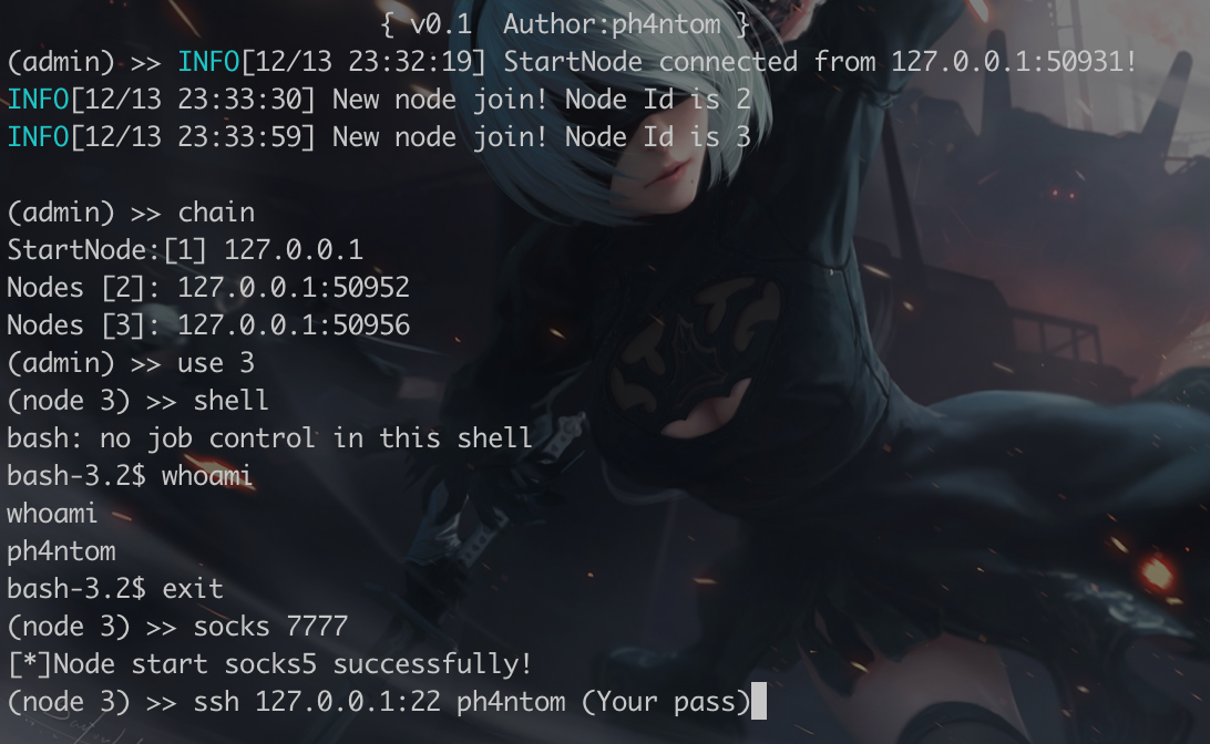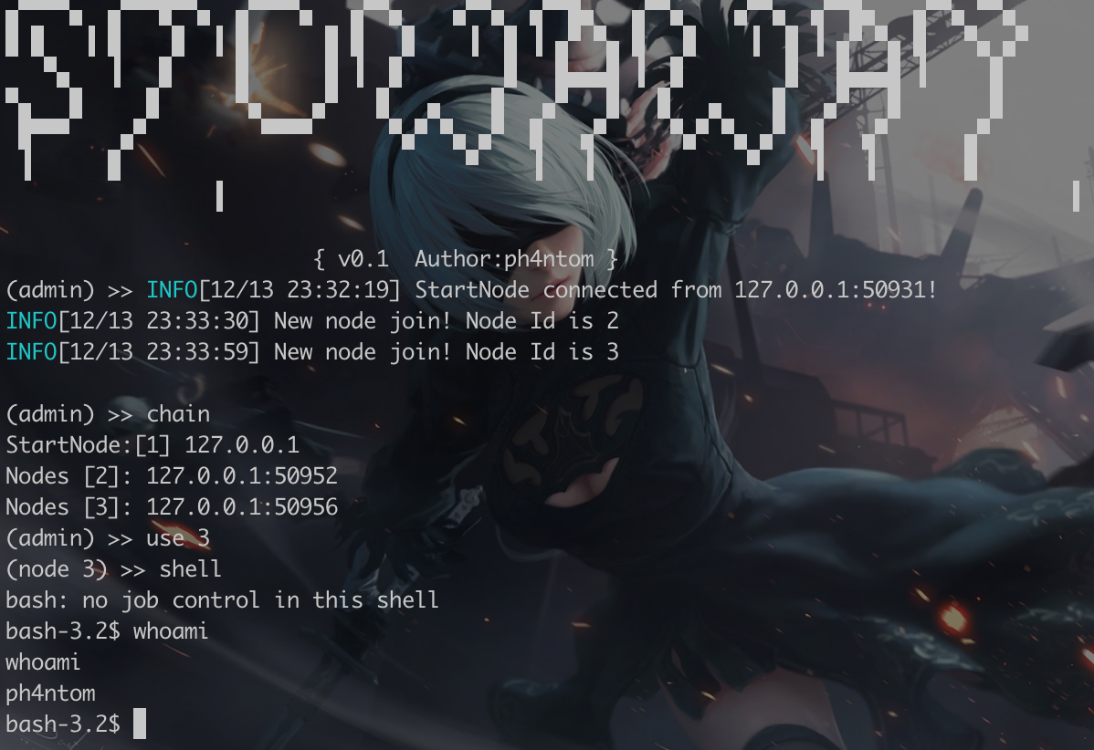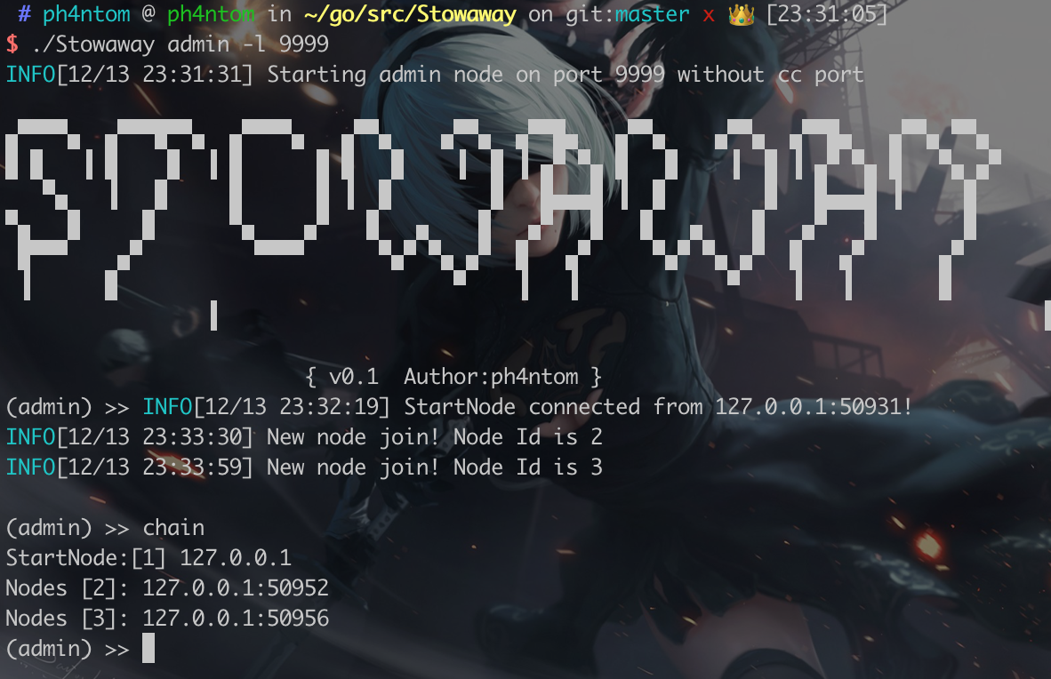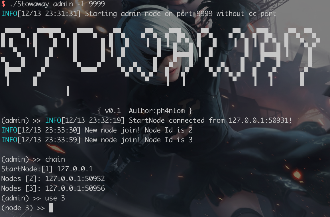 Admin mode:./stowaway admin -l 9999 -s 123