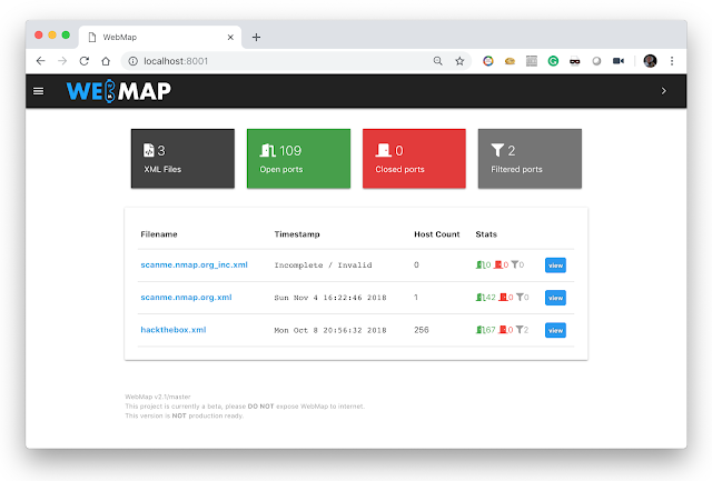 $ # now you can run Nmap and save the XML Report on /tmp/webmap